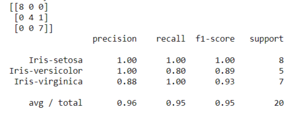 It is the matrix to see which class is predicted wrong. For our case, we have 5 iris versicolor results, which 4 are predicted as iris versicolor and 1 is wrongly predicted as iris virginica.
