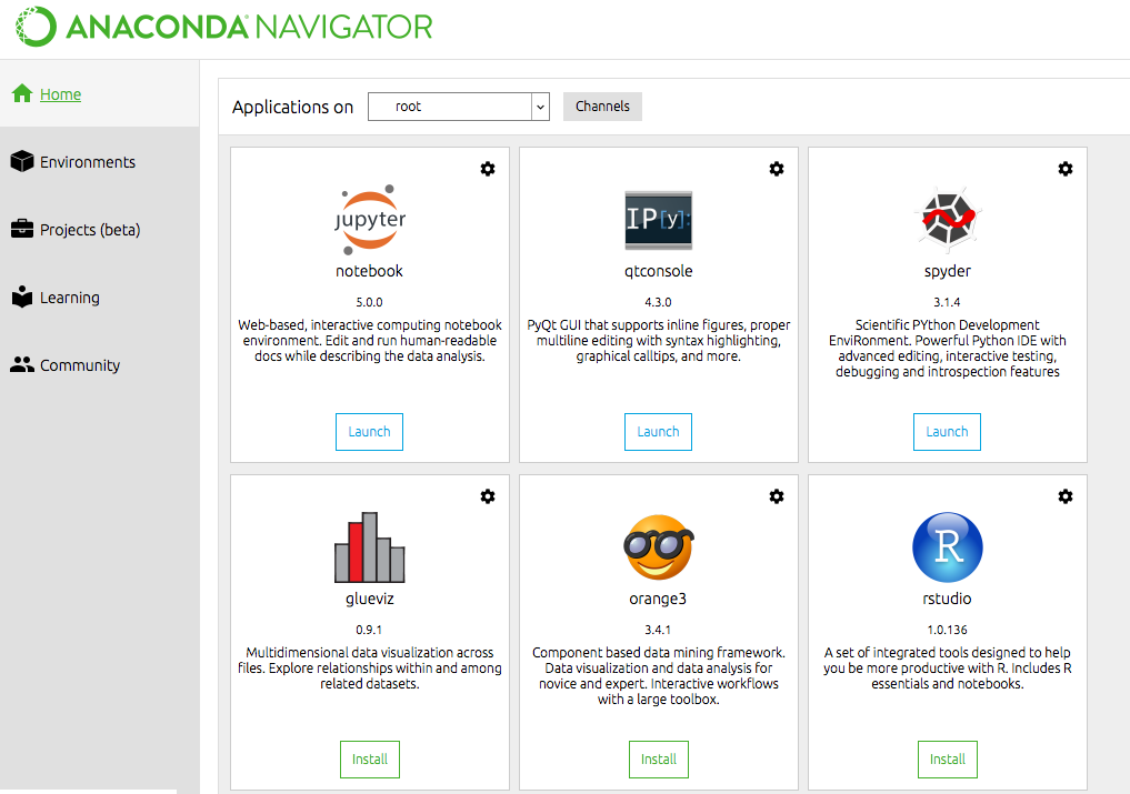 Once you open Anaconda, you would see a similar interface likes below: