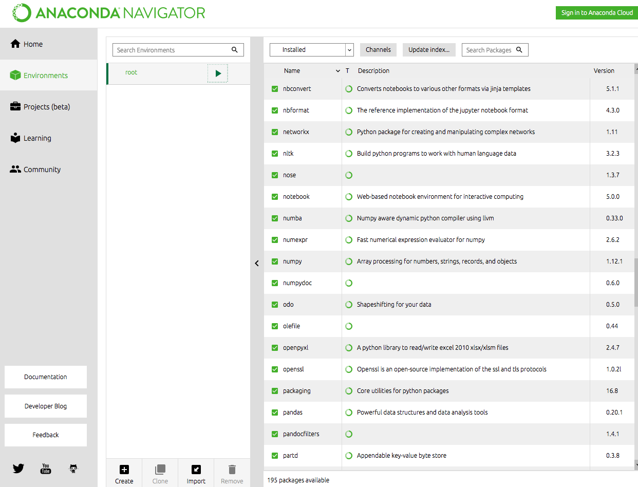 Click "Environment" on your left and there are tons of Python libraries installed in the environment, including those data science libraries we have mentioned: