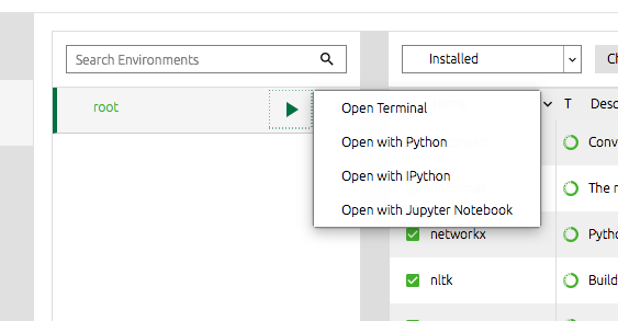 What we do next is, start our project by clicking the green arrow button and select "Open with Jupyter Notebook" option: