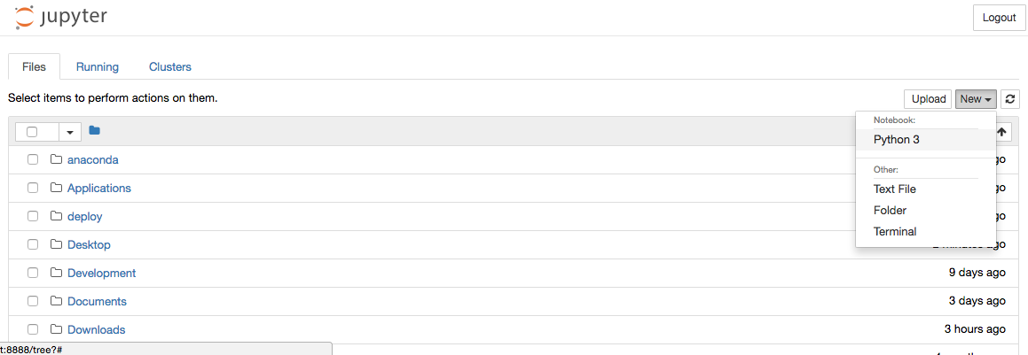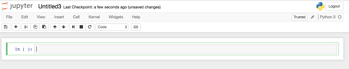Jupyer Notebook is a web application for users to create and share (not only) Data Science projects in (not only again) Python. We can click the "New" button in the upper right corner and select "Python 3":