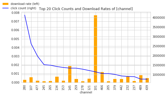 Since there are massive clicks and the download rate is low in general, we are making 2 assumptions: