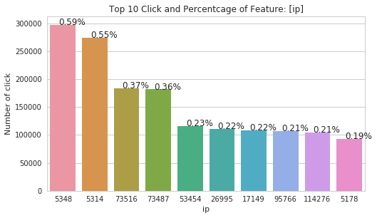 After that, we use the same function on 'ip', 'app', 'os' and 'device' features.