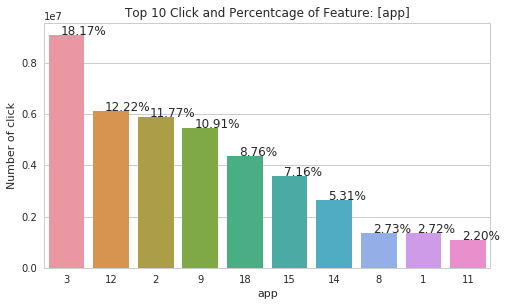 Again, we apply the same function on 'os', 'ip', 'channel' and 'app' features.