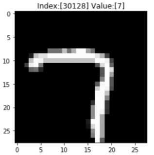 test_index = randrange(df_train_x.shape[0]) test_img = arr_train_x_28x28[test_index] plt.imshow(test_img.reshape(28,28), cmap='gray') plt.title("Index:[{}] Value:{}".format(test_index, df_train_y.values[test_index])) plt.show()